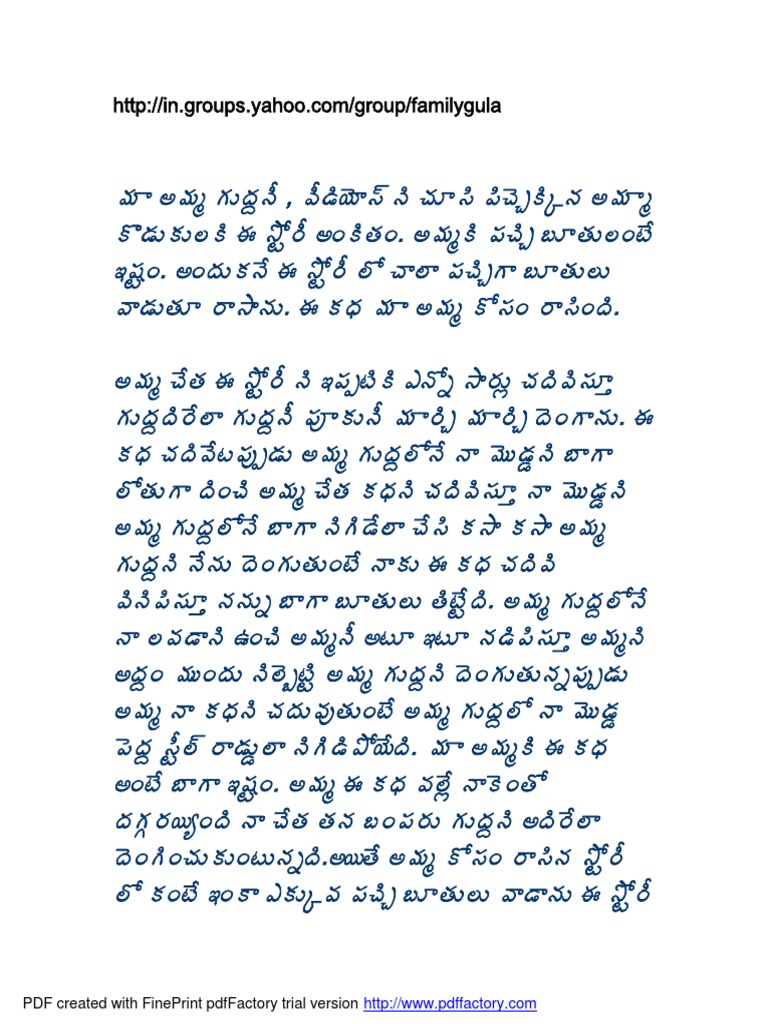 Konni rojulu maamulugaane gadichai.appudappudu madhyanam amma tailor daggariki velladam.nenu teliyakundaa follow avvadam.velli daakkuni aaa jaganatham gaadi.amma puku gudda dengadam choodatam.appudappudu vaadu ammanu.ne mogudiki vidakulichei.nannu chesko naakevvaru leru.naa aaaasthi anthaa ne peru raaasthaa ani adigevaadu.kaani amma anduku vaddanedi.tarvatha telsindi. Discover all gudda gudda's music connections, watch videos, listen to music, discuss and download. Amma is the epitome of love and motherly affection. If we look at amma's life, this is what we see—someone who has offered her every thought, word and deed for the benefit of others. Facebook gives people the power to share. Amma amma neee gudda entho baaagunde. Amma amma neee gudda entho baaagunde. Respond ayi denginchukundi tana pedda pirralu tho unna gudda bokka ni. The duration of song is 03:28. Mamidi kayal antah lavu modda tho tana gudda ni kulla podichadu antondi. Published on august 17, 2019 by admin. Amma pookulo voorina rasaanni amma guddaku raaasaaaanu. Amma pookulo voorina rasaanni amma guddaku raaasaaaanu.